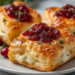 This recipe hits a lot of entertaining sweet spots: it’s fast, requires minimal ingredients, and looks elegant with almost no effort. Puff pastry gives that golden, flaky shell while Brie melts into a gooey center that pairs perfectly with the tartness of cranberry sauce. Make them for holiday gatherings, cocktail parties, or anytime you want a small-bite dessert-savory hybrid.