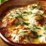 I first made this creamy, savory chicken on a hectic weeknight and it quickly became a go-to when I wanted something that felt indulgent but came together without fuss. Tender seared chicken topped with a silky cream cheese sauce (and a golden cheddar finish if you like) — it’s the kind of dish that’s both comforting and impressive for guests.