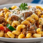 This Beefaroni is the kind of meal that solves problems: it’s fast, kid-approved, and uses ingredients you probably already have. You get protein, carbs, and a cozy tomato sauce all in one vessel, which means fewer dishes and less cleanup. It’s also forgiving — adjust herbs, swap proteins, or add veggies without breaking the method.