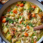 I remember the first time I made this creamy chicken stew: a chilly evening, the slow cooker humming away, and a bowl that tasted like comfort and home. This dish is a simple slow-cooker stew built on tender chicken thighs, chunky potatoes and carrots, and a silky cornstarch-thickened broth finished with bright peas — perfect for weeknights, picky eaters, or when you want low-effort, high-comfort dinner.