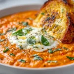 I still remember the first time I roasted two heads of garlic for this soup — the kitchen filled with a warm, sweet aroma that instantly felt like comfort. This Creamy Roasted Garlic Tomato Soup is rich, silky, and layered with roasted-garlic depth that makes it far more interesting than a run-of-the-mill tomato soup. It’s perfect for chilly weeknights, simple dinner parties, or when you want something soothing and slightly elegant without a lot of fuss. If you like creamy tomato soups but want something with a roasted, garlicky backbone, this is the one to make. (For another creamy soup to try on a different night, see this creamy crockpot chicken gnocchi soup.)