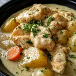 I make this Crock Pot Creamy Chicken whenever I need a no-fuss, comforting dinner that practically cooks itself. Tender chicken, fork-soft potatoes, and sweet baby carrots swim in a simple creamy ranch-and-chicken-soup sauce — a set-it-and-forget-it meal that’s perfect for busy weeknights, cold evenings, or when you want a family-friendly dish with minimal cleanup.