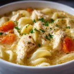 I make this Crockpot Creamy Chicken Noodle Soup whenever I want hands-off comfort food that still tastes homemade. It’s a slow-cooker classic: tender shredded chicken, soft vegetables, egg noodles, and a splash of cream to make the broth silky. Perfect for busy weeknights, cold days, or when you’re feeding picky eaters who love a familiar bowl of soup.