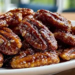I still remember the first time I made these candied pecans in the crockpot — the house smelled like a cinnamon-sugar bakery with a warm hit of Fireball whisky that made everyone stop and ask, “What’s that?” They’re crunchy, sweet, and a little boozy: perfect for gift jars, holiday snack bowls, or topping a salad when you want something with a little kick. This recipe is hands-off, forgiving, and scales easily, which is exactly why it lives in my slow-cooker rotation all winter long. If you’ve loved slow-cooker sweets or want an easy hostess gift, these pecans are a must-try. For other slow-cooker favorites, I also like keeping a few go-to mains on hand like this best crockpot chicken recipe.