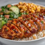 Freezing: I don’t recommend freezing the assembled bowl — corn and rice can change texture when frozen. If you must freeze, separate components (chicken and rice) and freeze only the chicken for up to 2–3 months; thaw overnight in the fridge before reheating.