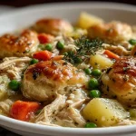 I’ve been making this cozy pot pie for years when I want something comforting, quick, and crowd-pleasing. It’s a creamy chicken filling loaded with shredded chicken, peas and carrots, potatoes, and a flaky top — perfect for weeknights, chilly weekends, or when you need a simple holiday side that feels like a main. If you like a one-dish dinner that’s forgiving and family-approved, this version won’t let you down. For an alternate slow-cooker take, try this slow-cooker chicken pot pie recipe I reference sometimes when I need hands-off cooking.