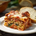 I make this lasagna on busy weeknights and for Sunday dinners — it’s reliably comforting and doesn’t demand exotic ingredients. This classic layered lasagna combines browned beef, creamy ricotta, two kinds of melty cheese, and a jar of marinara to keep things simple when you want a real home-cooked meal without fuss. If you love straightforward, family-friendly comfort food, this recipe hits the mark every time. For a different take on layered beef lasagna, try this Beef & Veggie Lasagna I reference often.
