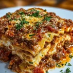 This lasagna hits the sweet spot between comfort food and show-stopper. It’s layered with a hearty beef-and-sausage tomato sauce, a creamy ricotta/cream-cheese mixture, and plenty of mozzarella for stretch. The cream cheese gives it a slightly tangy richness that changes the texture from classic lasagna—so slices hold together beautifully and taste indulgent without being fussy.