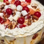 This salad checks a lot of boxes: silky cream cheese base, airy whipped cream, bright fresh fruit, pillowy marshmallows, and crunchy nuts. It’s quick to assemble, scales easily for a crowd, and travel-friendly for picnics or potlucks. Kids love the sweetness and textures, and adults appreciate the cheesecake-like richness without any baking.