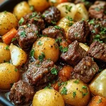 I first made this slow cooker garlic butter beef bites and potatoes on a rainy weeknight when I wanted comfort food with almost no hands-on time. The result was tender, garlicky beef and soft baby potatoes bathed in a silky butter sauce — a dinner the whole family went back for seconds on. It’s one of those set-it-and-forget-it recipes that still tastes homemade because of a few simple technique choices (and good-quality beef).